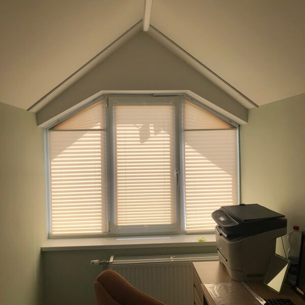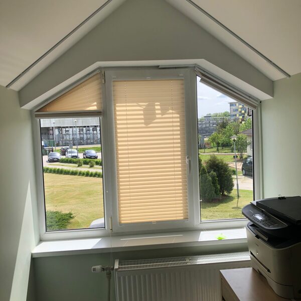 Plisētās žalūzijas - elegants un kompakts risinājums dažādu formu logiem, tostarp pakešu logiem.